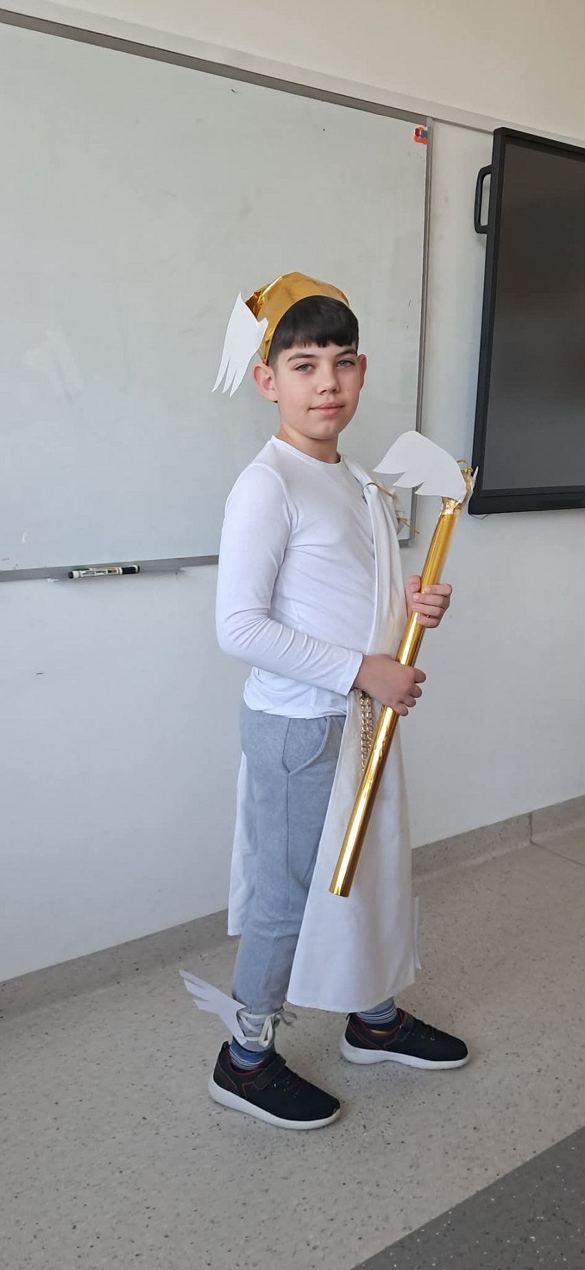W klasie V odbyła się wyjątkowa lekcja języka polskiego, która na długo pozostanie w pamięci uczniów. Tego dnia sala lekcyjna zamieniła się w mityczny Olimp, a uczniowie – dzięki niezwykłej kreatywności i zaangażowaniu – wcielili się w postacie greckich bogów.