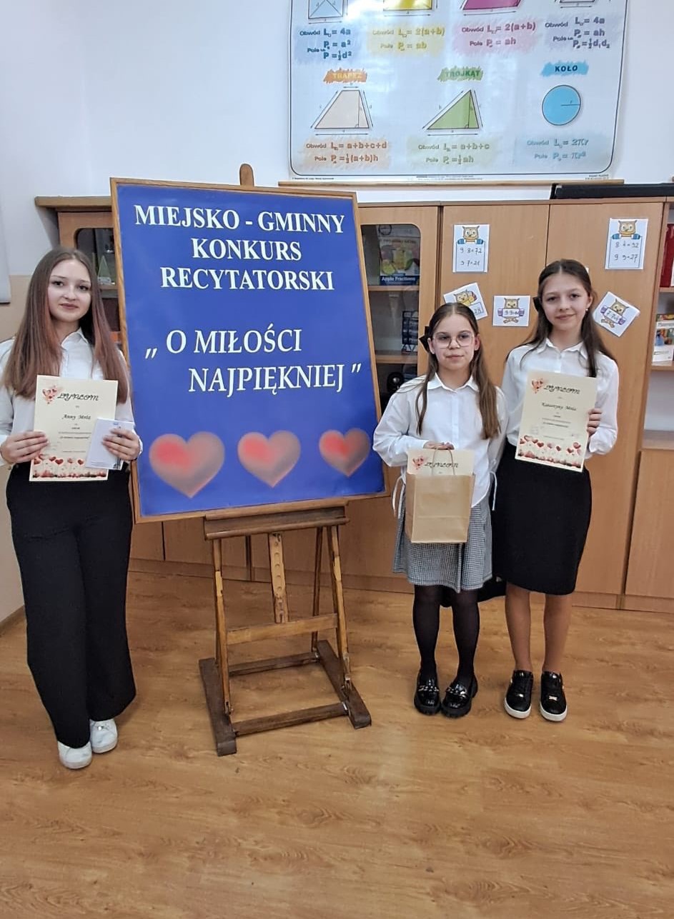 Uczennice naszej szkoły wzięły udział w konkursie recytatorskim „O miłości najpiękniej”, który odbył się w Szkole Podstawowej nr 2 im. Jana Pawła II w Łaskarzewie.